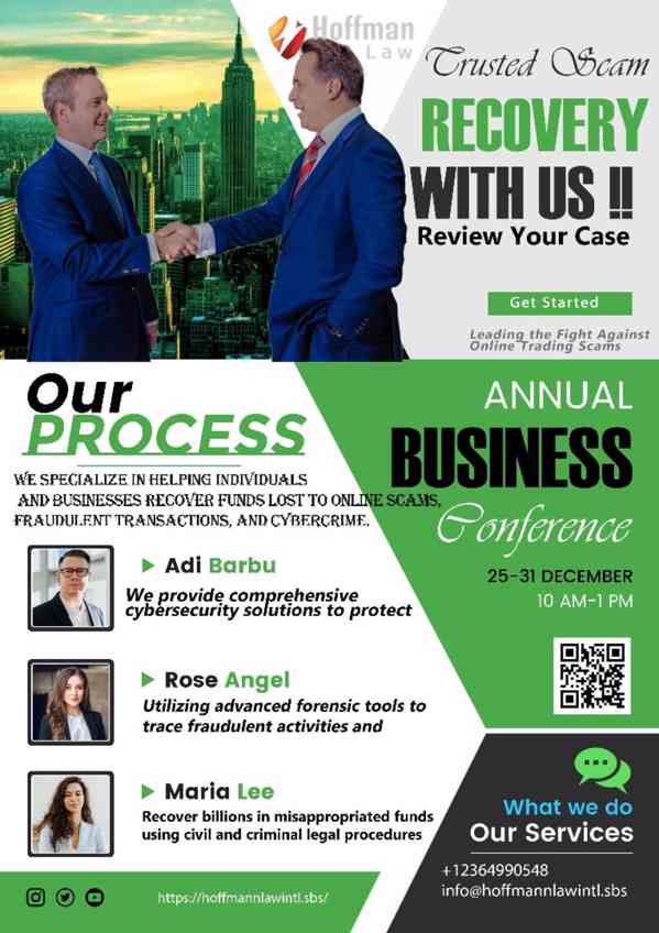 The world here promises quick profits and often leads to scams, finding a trustworthy digital assets recovery service is like finding a treasure. After being tricked by a scam investment platform and losing substantial money, I felt devastated and hopeless. Amidst my despair, I discovered Hoffman Law Recovery, and it turned out to be a game-changer. I contacted them and shared my transaction history, hoping for a miracle. They analyzed my case, provided regular updates, and showed dedication throughout my recovery. Their professionalism and commitment were evident as they navigated the complexities of digital asset recovery, leaving no stone unturned. providing much-needed reassurance during a difficult time. Hoffman Law Recovery delivered on their promise and successfully recovered my lost funds. Their transparency and integrity reinforced my trust in their abilities, and I am grateful for their impact on my life