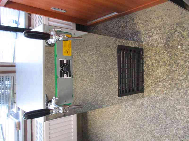 Pivní chlazení přenosné vodní. Výčep na pivo 2 -kohouty. Výkon 160 l/hod. - 6 piv/min, ledová banka 25kg. Rozměry (š,h,v) 38x38x70cm. Nápojová hadice 6,7x9,5mm x 4m. Váha 42kg. Záruka 1 rok. Toto zařízení je kompletně repasované v chladírenském servise.