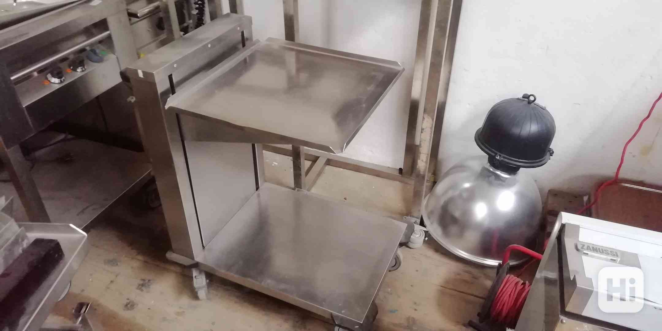 Konzolový - nerezový vozík do kuchyně, jídelny, atd., vhodný na tácy nebo koše do myčky nebo talíře. Vozík má posuvnou polici s pružinou, tedy pří odebrání se stále zvedá. Madlo pro převoz, otočná kola, brzda. Rozměr ŠxHxV: 530 x 700 x 1000 mm. Použitý, v dobrém stavu, počet kusů 2; běžná cena: 16.999,- Kč, bazarová cena: 3.990,- Kč + doprava (kód: BUV100127)